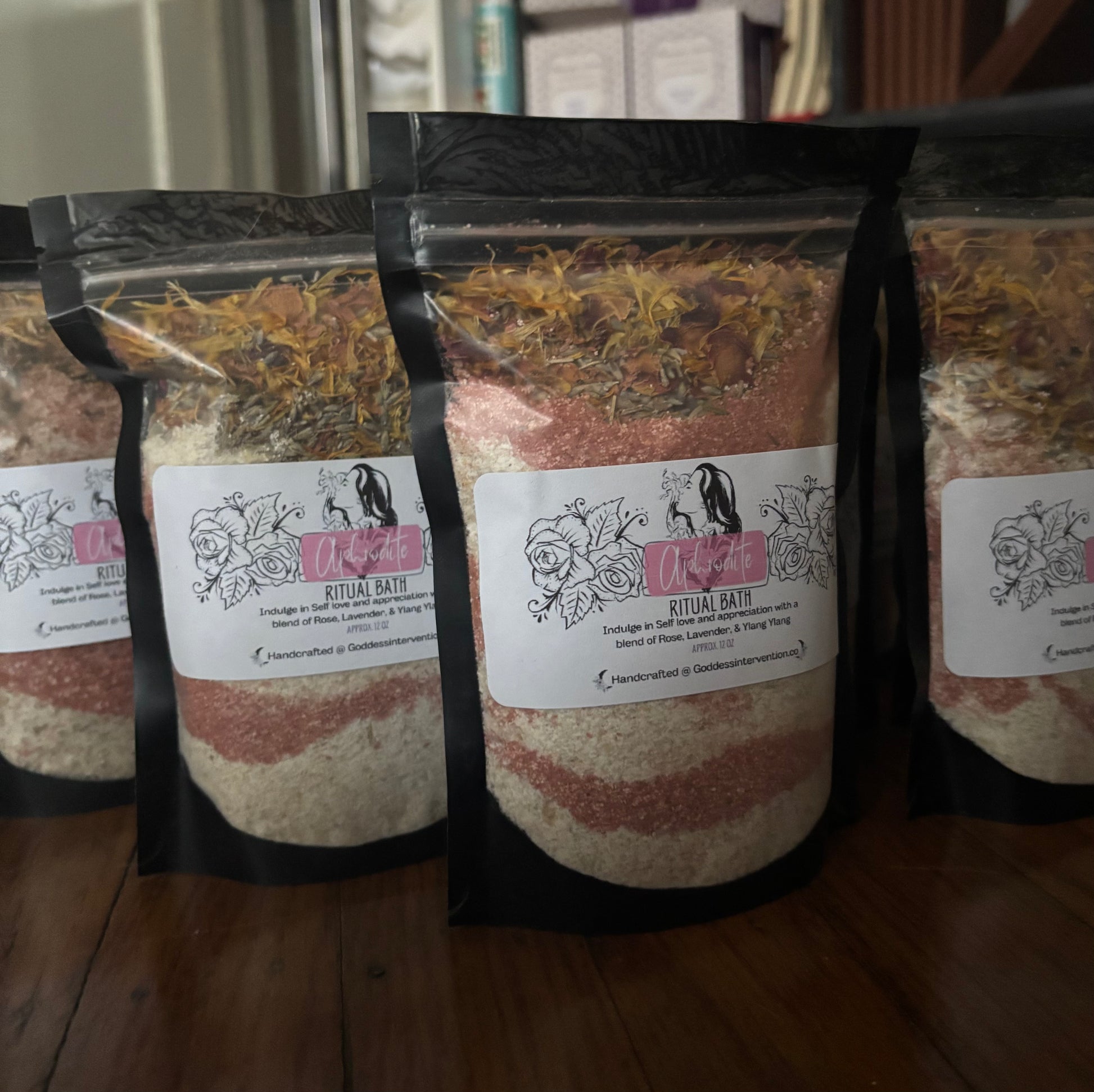 This ritual bath by Goddess Intervetion is the perfect self care item or gift to the goddesses in your life. Beautiful scents and flowers make for a gorgeous ritual bath!
